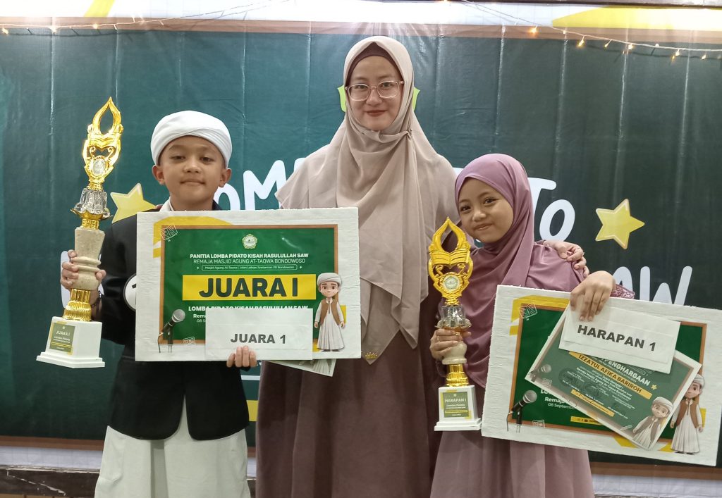 MIA- MI At Taqwa berhasil meraih Juara 1 dan Juara Harapan 1 lomba pidato Kisah Rasulullah SAW tingkat SD dan MI sederajat Kabupaten Bondowoso. Diadakan oleh Remaja Masjid Jami’ At Taqwa Bondowoso.
